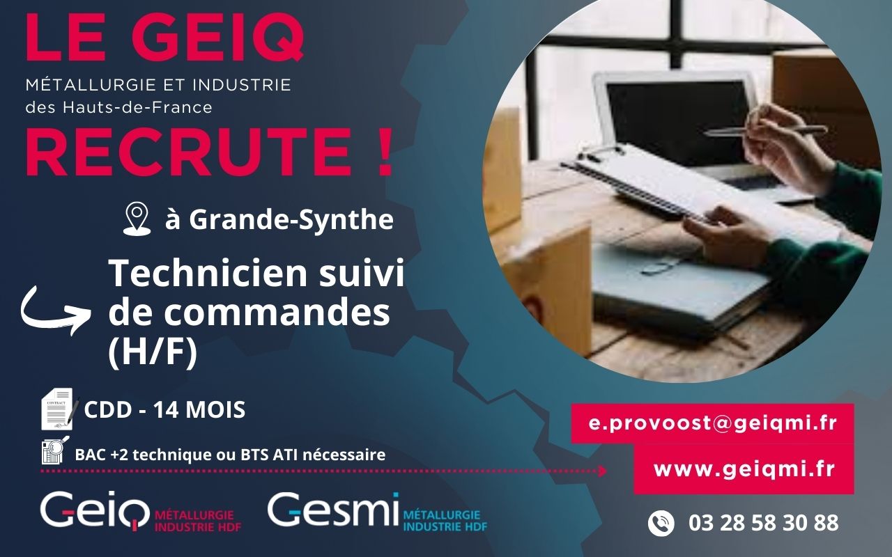 Le GEIQ Métallurgie et Industrie Hauts-de-France recrute actuellement, pour l’une de ses entreprises adhérentes spécialisée dans la production de tôles fortes en acier, un(e) Technicien(ne) suivi de commandes (H/F) à Grande-Synthe.